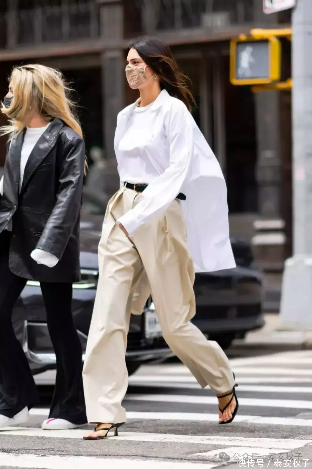在选款的时候,一般都是以“合身却不紧绷”的衣服为主:比如宽出1.5cm的肩线,自然上移2cm的腰线,远离双腿8cm的裤腿宽度……